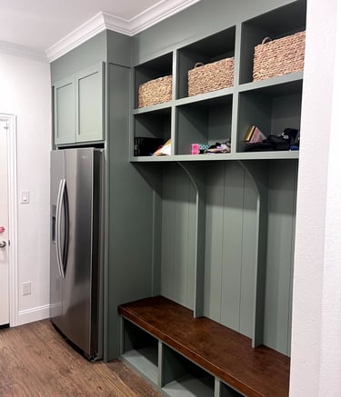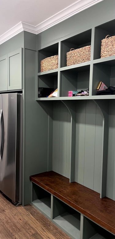 Custom cabinetry designed to display keepsakes and keep you organized